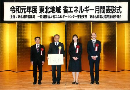 2020年2月19日、東北経済産業局などが主催する「令和元年度 東北地域 省エネルギー月間表彰」にて、当社が「エネルギー管理優良工場等東北経済産業局長表彰」を受賞いたしました。