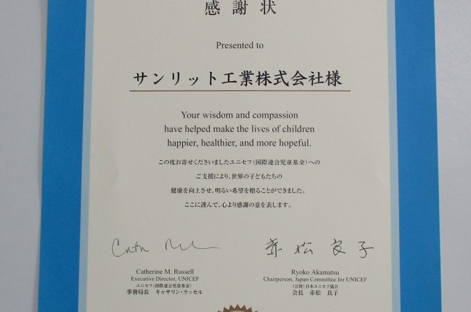 当社では、ユニセフ・マンスリーサポート・プログラムを通じて寄付を定期的に行っており、日本ユニセフ協会様より感謝状をいただきました。 日本を含め世界中の...